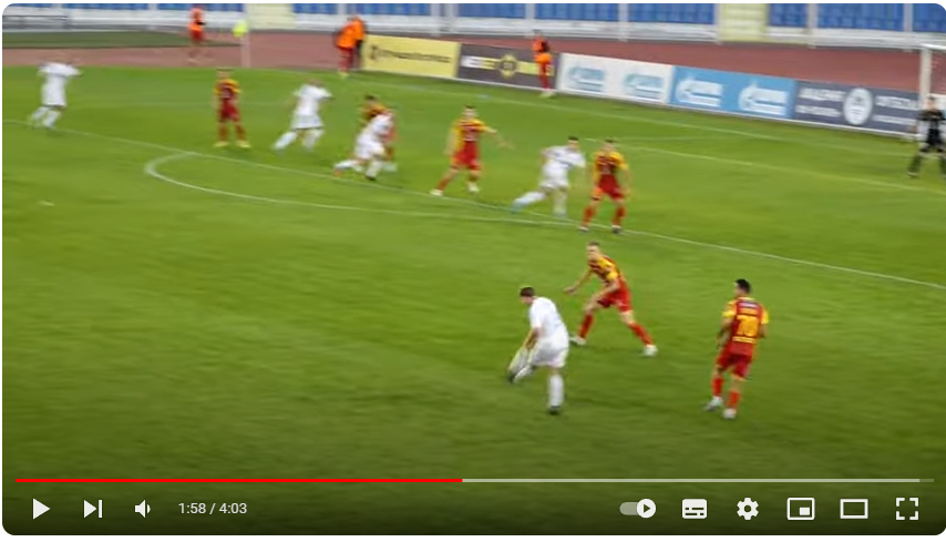 Ботака явно ближе к воротам, чем вбегающий в штрафную Лесников (он средний из астраханцев).